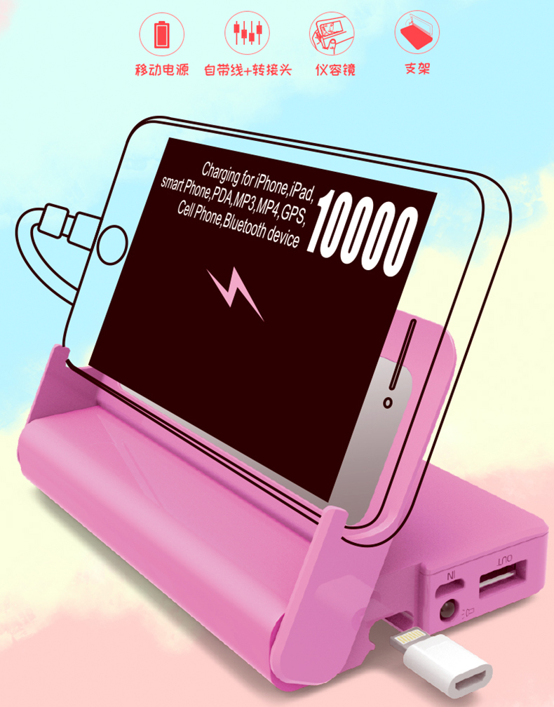 支架+自帶線移動電源+化妝鏡+照明燈
