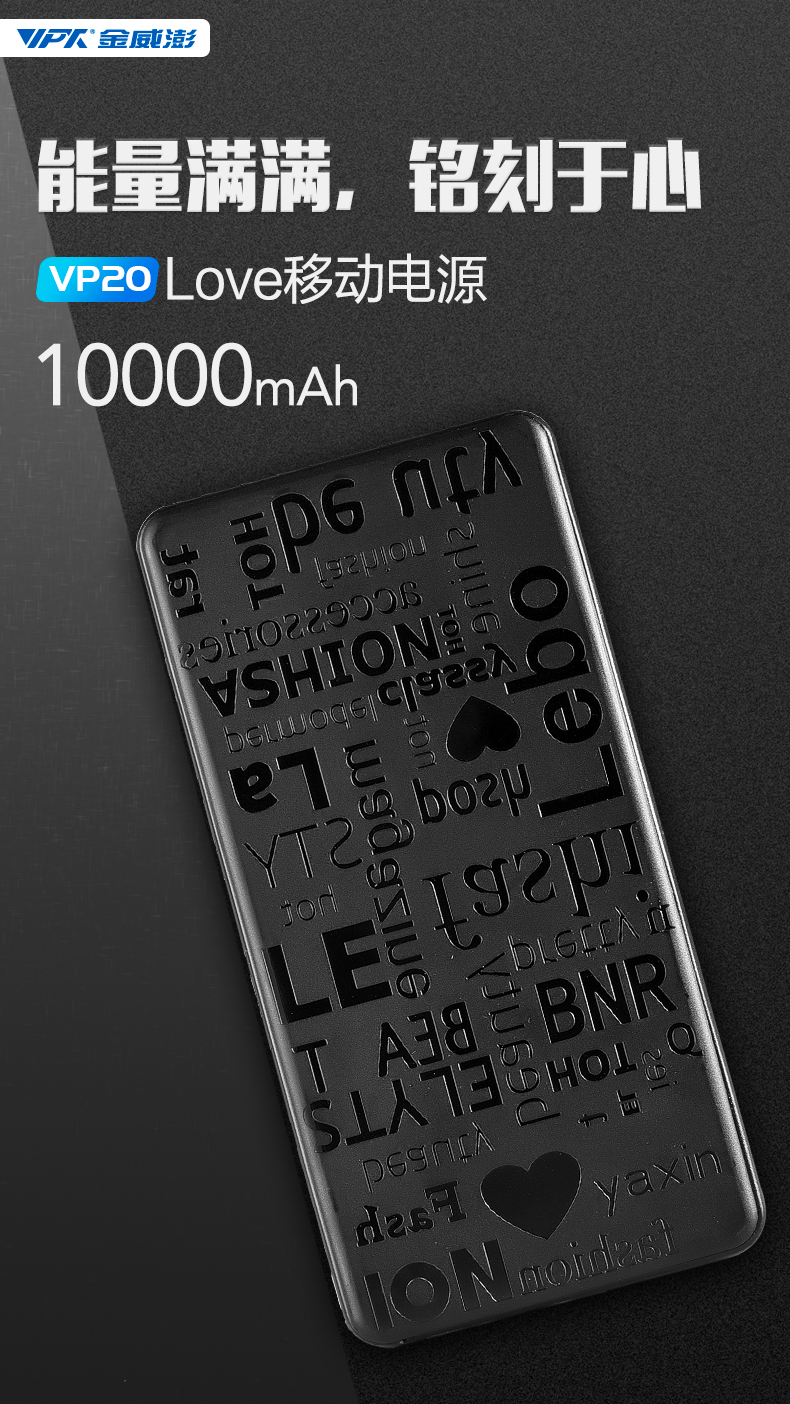 產(chǎn)品型號:VP20電芯類型:鋰離子電芯電池容量:10000mAh額定能量:37Wh產(chǎn)品尺寸:109x64x11mm